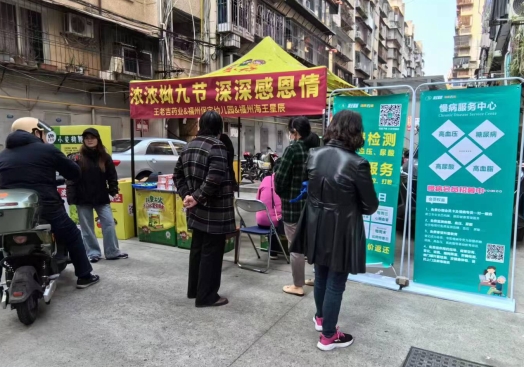福州海王星辰健康藥房的小伙伴們,也給前來參加活動的奶奶、外婆等免費測量血壓血糖。