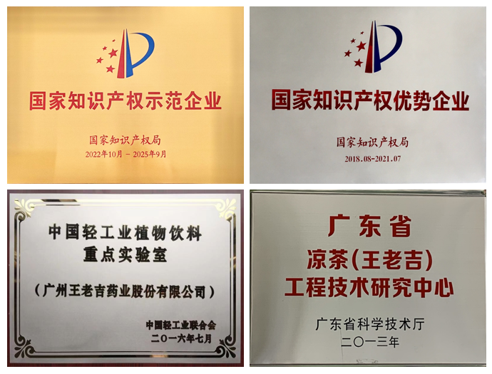 在企業發展過程中,王老吉藥業始終重視科技創新、人才培養。“廣州市博士后創新實踐基地”是王老吉藥業繼中國輕工業重點實驗室、廣東省名優中成藥與涼茶重點實驗室、廣東省省級企業技術中心、廣東省涼茶(王老吉)工程研究中心之后,又斬獲的一項新的科技創新平臺榮譽。王老吉藥業一貫重視技術創新與技術進步,20112014年連續2次認定國家火炬計劃重點高新技術企業,2008年以來連續5次認定為高新技術企業。王老吉藥業現有有效專利數量78項,先后榮獲國家知識產權優勢企業和國家知識產權示范企業等榮譽稱號及其他省市創新企業稱號。王老吉藥業持續依托公司省市級重點科研平臺加大對中成藥和涼茶植物飲料等產品的科技研發力度,并榮獲1項國家科學技術進步獎,4項中國專利優秀獎等諸多國家級、省市科技獎項,其中20171月,王老吉涼茶原料DNA條形碼物種鑒定體系獲國家科技進步二等獎,代表中國涼茶行業站上了國家最高科技領獎臺,成為涼茶行業首家獲此殊榮的品牌。