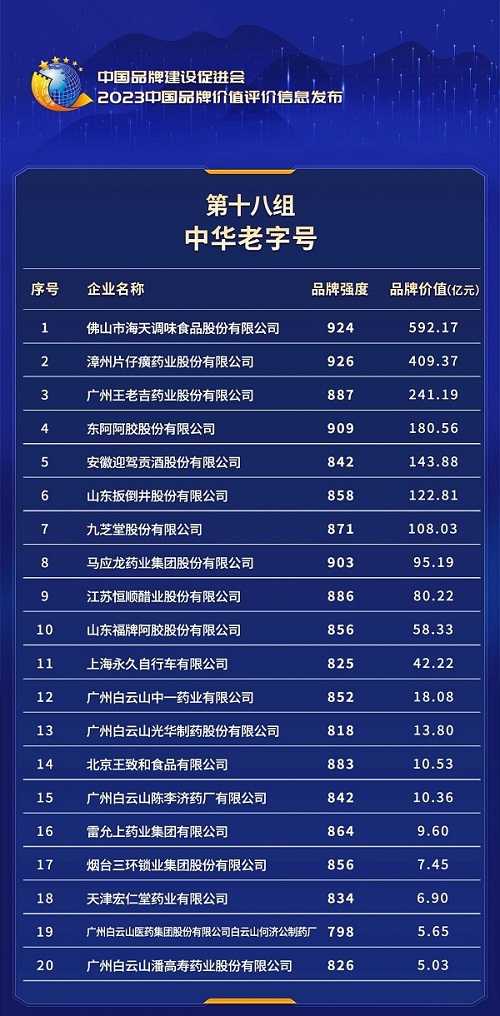 2023中國(guó)品牌價(jià)值評(píng)價(jià)信息發(fā)布:廣藥集團(tuán)位居榜首、王老吉品牌位列第三