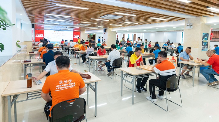 在為時(shí)一天半的緊張比賽中,參賽選手們端坐在棋臺(tái)前運(yùn)籌帷幄,排兵布陣,斗智斗勇,或布局縝密、誘敵深入,或信手落子、妙棋連連,比賽現(xiàn)場(chǎng)既緊張激烈,又充滿和諧友誼。