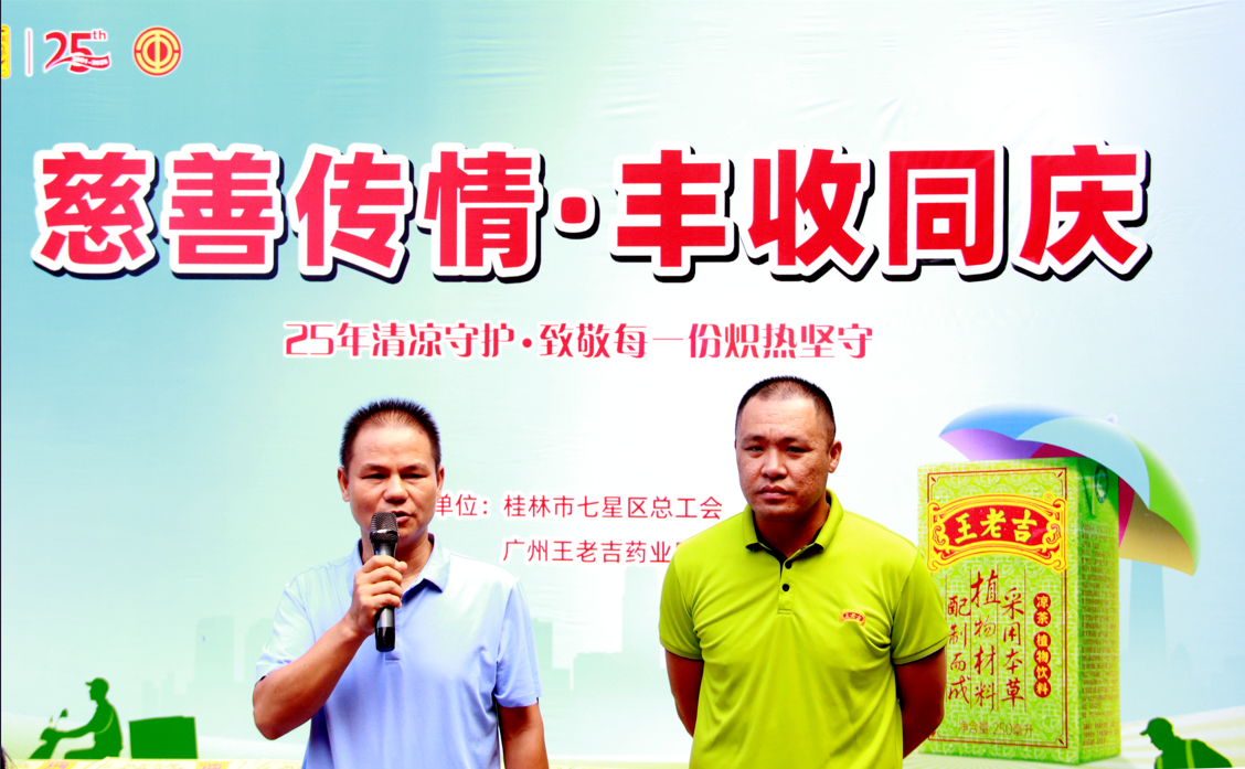 9月23日,廣州王老吉藥業(yè)股份有限公司與桂林市七星區(qū)總工會(huì)精心策劃并聯(lián)合舉辦了以“慈善傳情,豐收同慶”為主題的關(guān)愛(ài)環(huán)衛(wèi)工人、新就業(yè)形態(tài)勞動(dòng)者雙節(jié)暖心公益活動(dòng)。