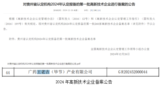 科技創新結碩果,賦能發展新高度|廣藥王老吉畢節公司首獲國家高新技術企業認定